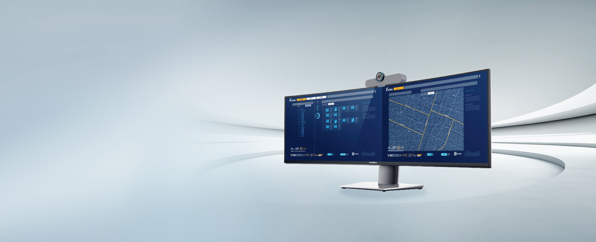 采用超宽屏幕,宽广视角无缝呈现,实现流畅无间的多屏协作体验。曲面环绕式设计,让调度工作更加专注高效。